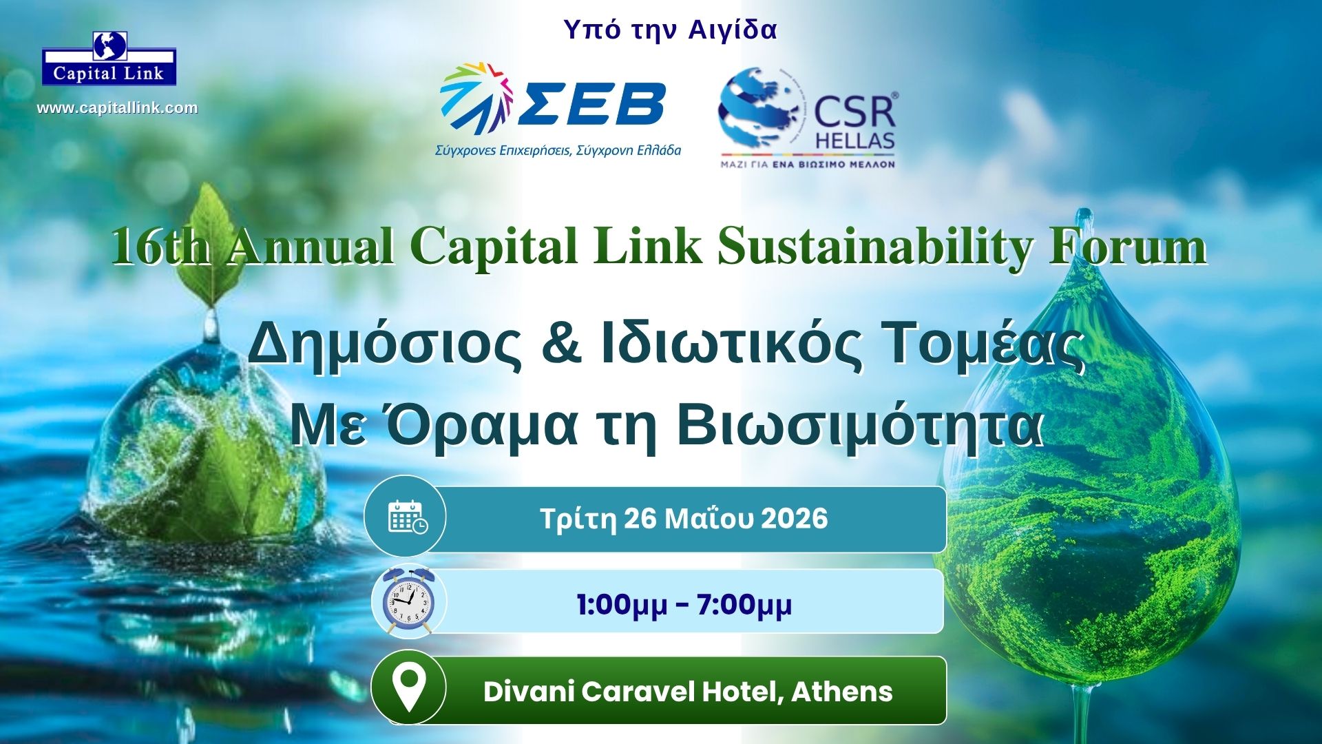 Ο Σύνδεσμος Επιχειρήσεων Τεχνολογίας Πληροφορικής Ελλάδος (ΣΕΤΠΕ) στο πλαίσιο της διαρκούς υποστήριξης πρωτοβουλιών που προάγουν τη βιώσιμη ανάπτυξη και την καινοτομία, συμμετέχει ως Φορέας Υποστήριξης στο 16ο Annual Capital Link Sustainability Forum, το οποίο θα πραγματοποιηθεί την Τρίτη 26 Μαΐου 2026, με τίτλο «Δημόσιος & Ιδιωτικός Τομέας με Όραμα τη Βιωσιμότητα».