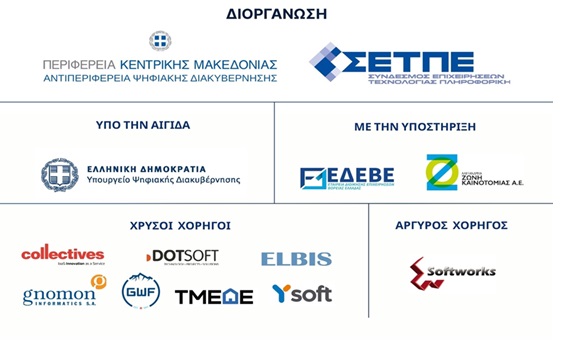 Χρυσοί χορηγοί της εκδήλωσης είναι οι εταιρίες collectives, DOTSOFT, Gnomon Informatics, ELBIS, GWF και Ysoft, όπως επίσης και το Ταμείο Μηχανικών